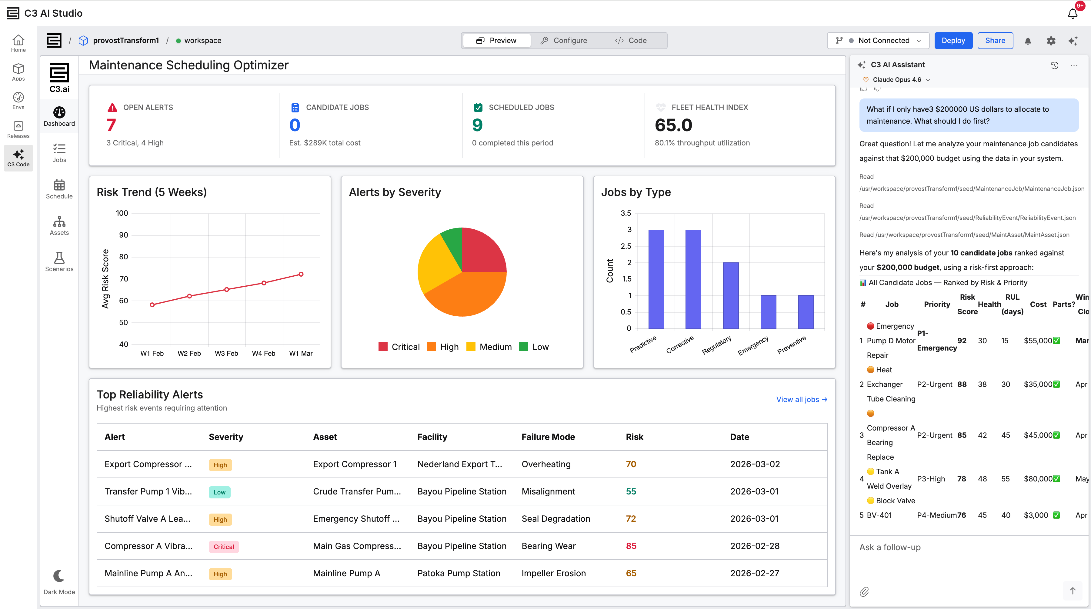 C3 AI application packages encode how real enterprises work — assets, processes, events, metrics, and relationships — so C3 Code starts from operational context instead of a blank schema.